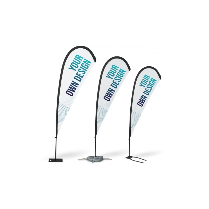 Le prix inclus : la base, le mât et le drapeau imprimé.