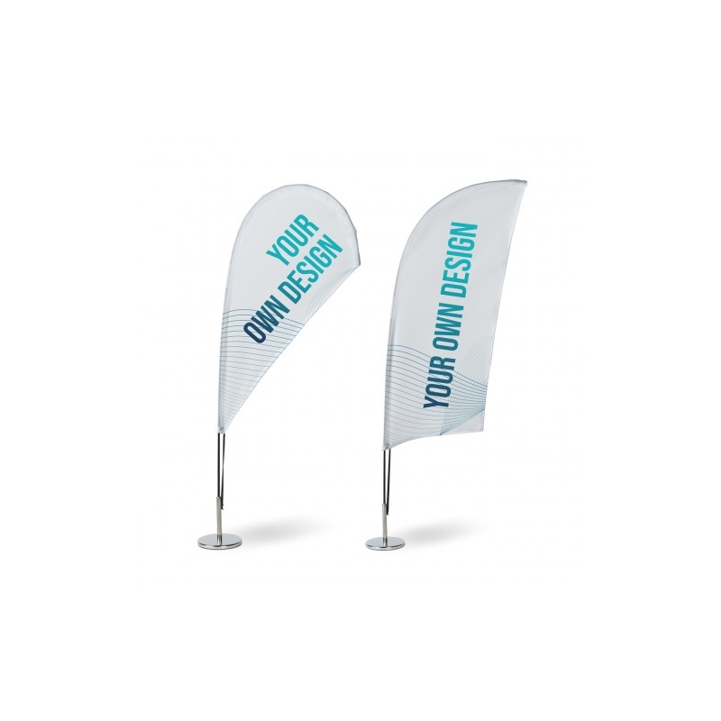 Hauteur mini oriflamme de type goutte montée : 60 cm env.