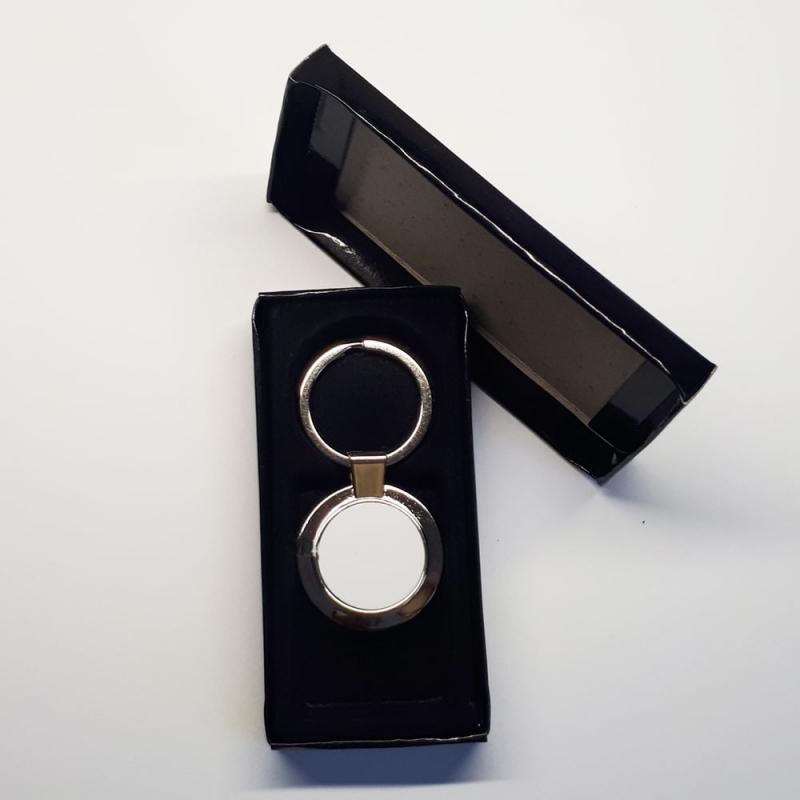 - Porte-clés en métal argenté brillant